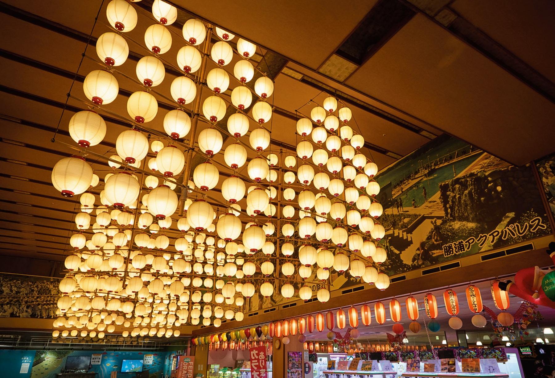 「お祭りランド」のエントランスにはたくさんの提灯が飾られていて賑やか。