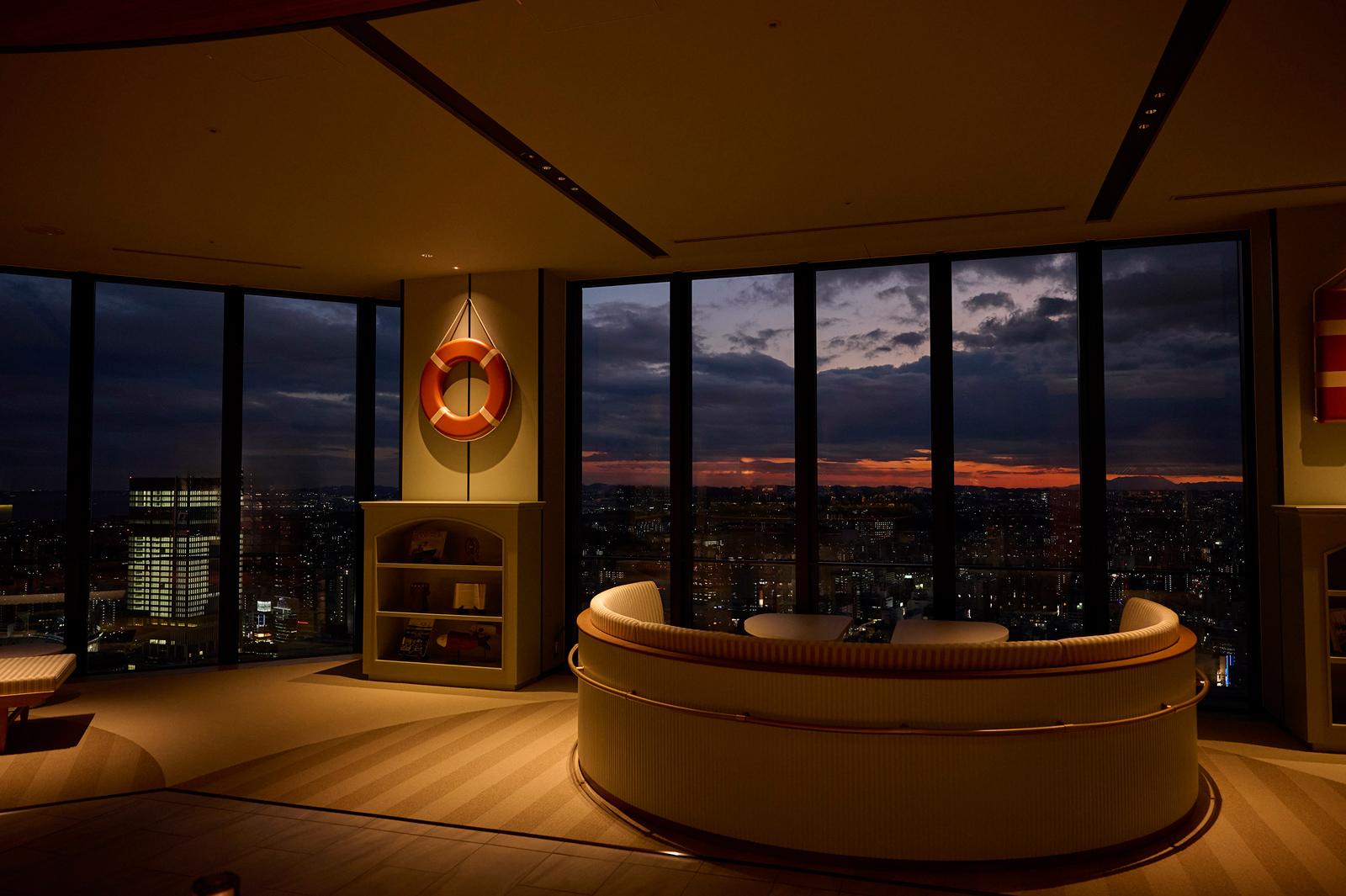 操舵室から着想を得たレセプションや、浮輪を模した「OMO」のロゴなど、船を思わせるモチーフもそこかしこにあり、まるで空に浮かぶクルーズ船に乗り込んだような気分に。