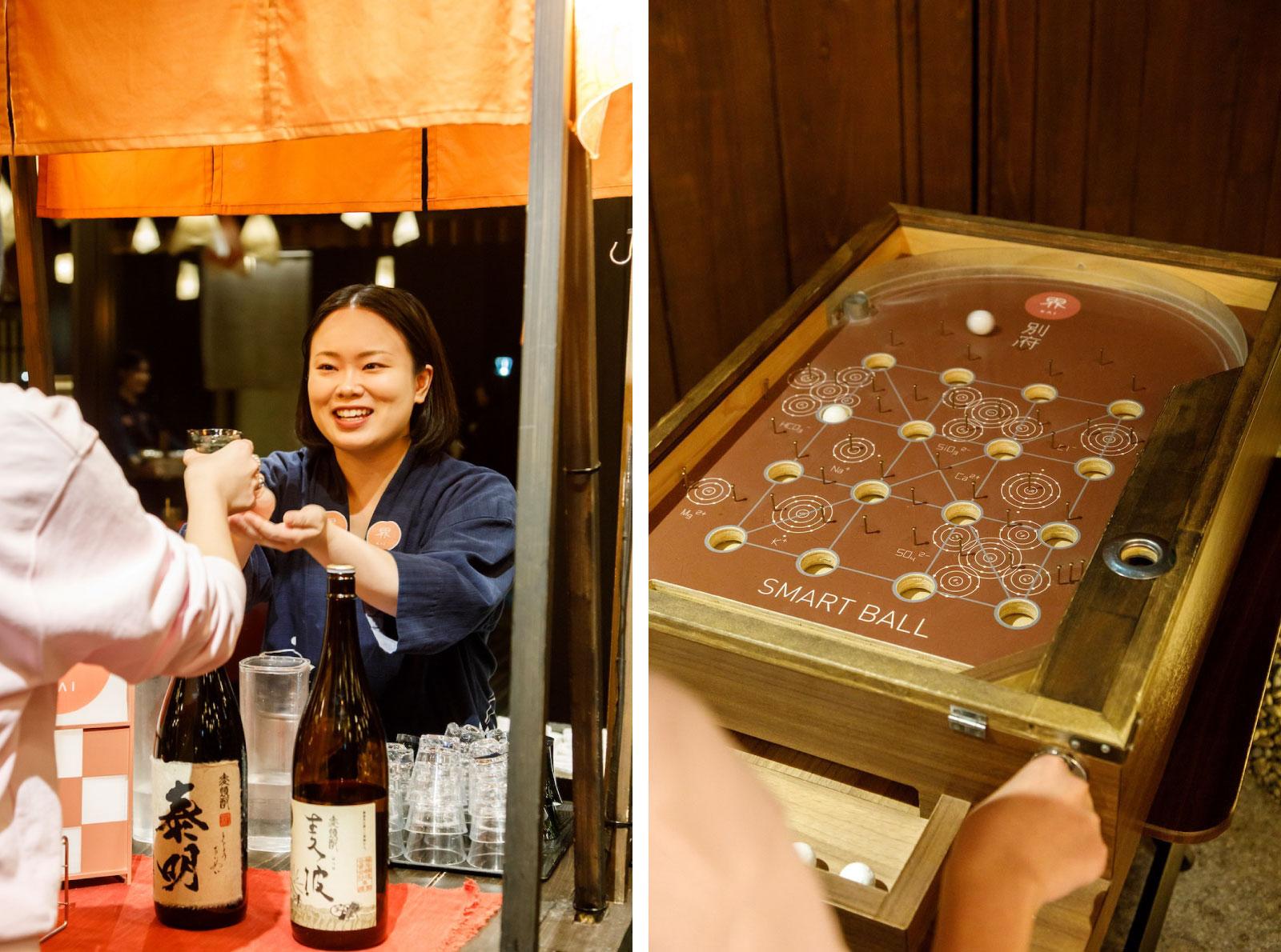 「湯の広場」は昼と夜とで一味違う雰囲気。日が暮れはじめると夜店が並び一気に賑わいを見せ、まるでレトロな温泉街を歩いているよう。部屋にある滞在着で赴くと一層その世界観に浸れるので、早めに温泉に入って滞在着に着替えるのがおすすめ。
