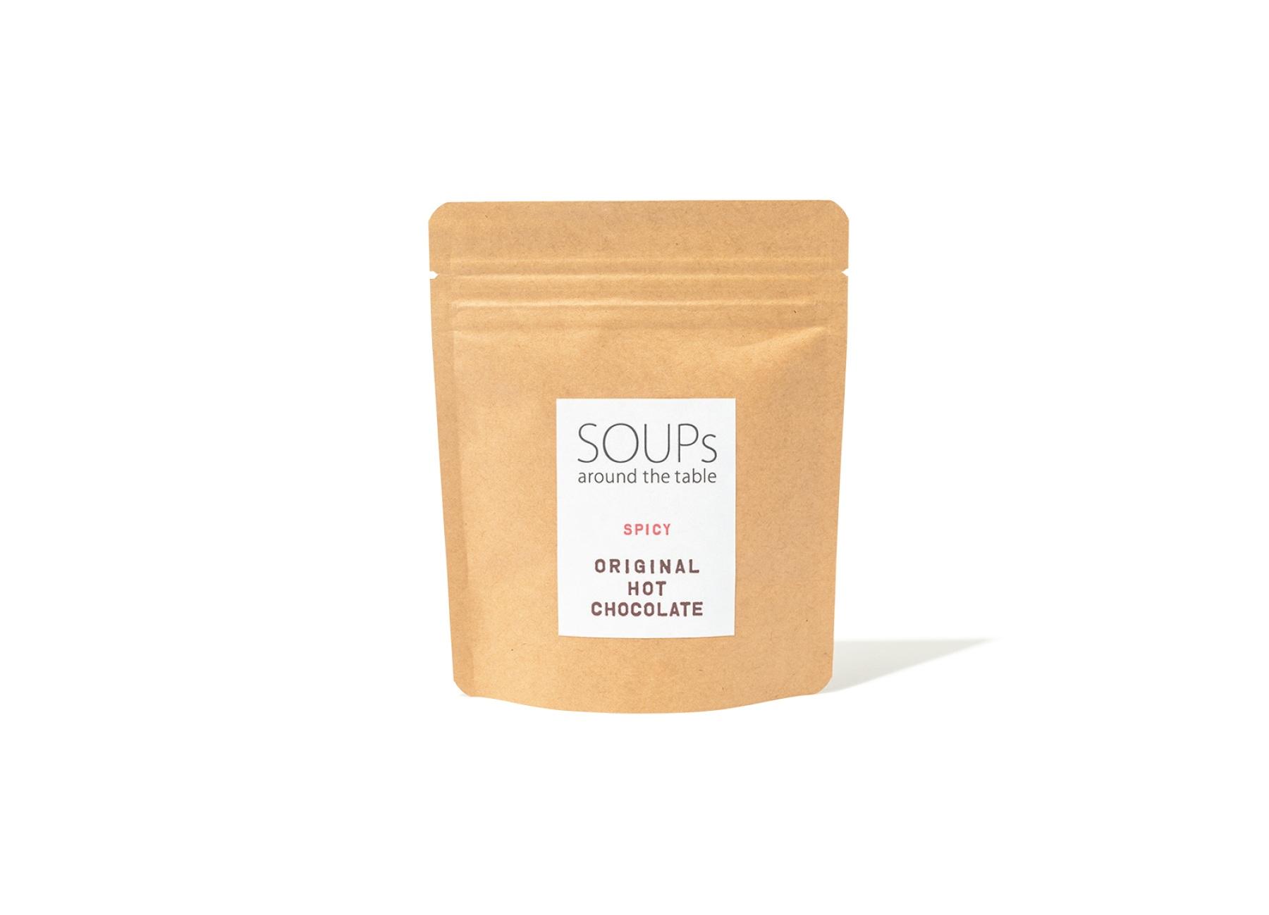 有機カカオパウダーに、チョコチップやスパイスなどをブレンド。温めた牛乳と合わせるのはもちろん、ケーキ生地に混ぜ込むなど、アレンジも自在。オリジナル ホットチョコレート スパイシー 85g ¥1,252(SOUPs)