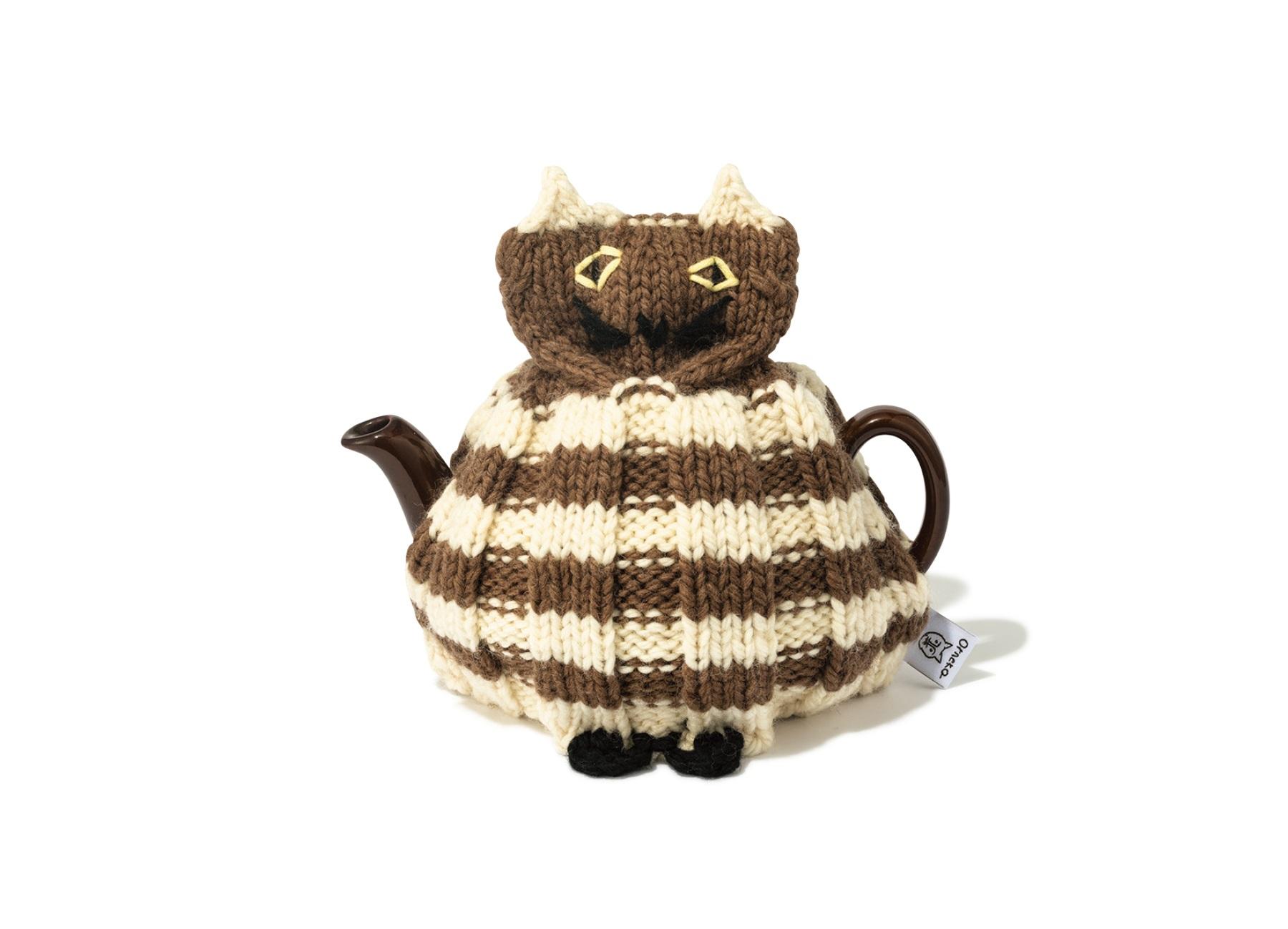 とぼけた表情がたまらない、猫のポットカバー。ちょこんと揃えた足元も愛らしく、置いてあるだけでテーブルが楽しげな雰囲気に。他に白猫や黒猫など、全5種類がラインナップ。 ¥5,500(オルネ ド フォイユ)