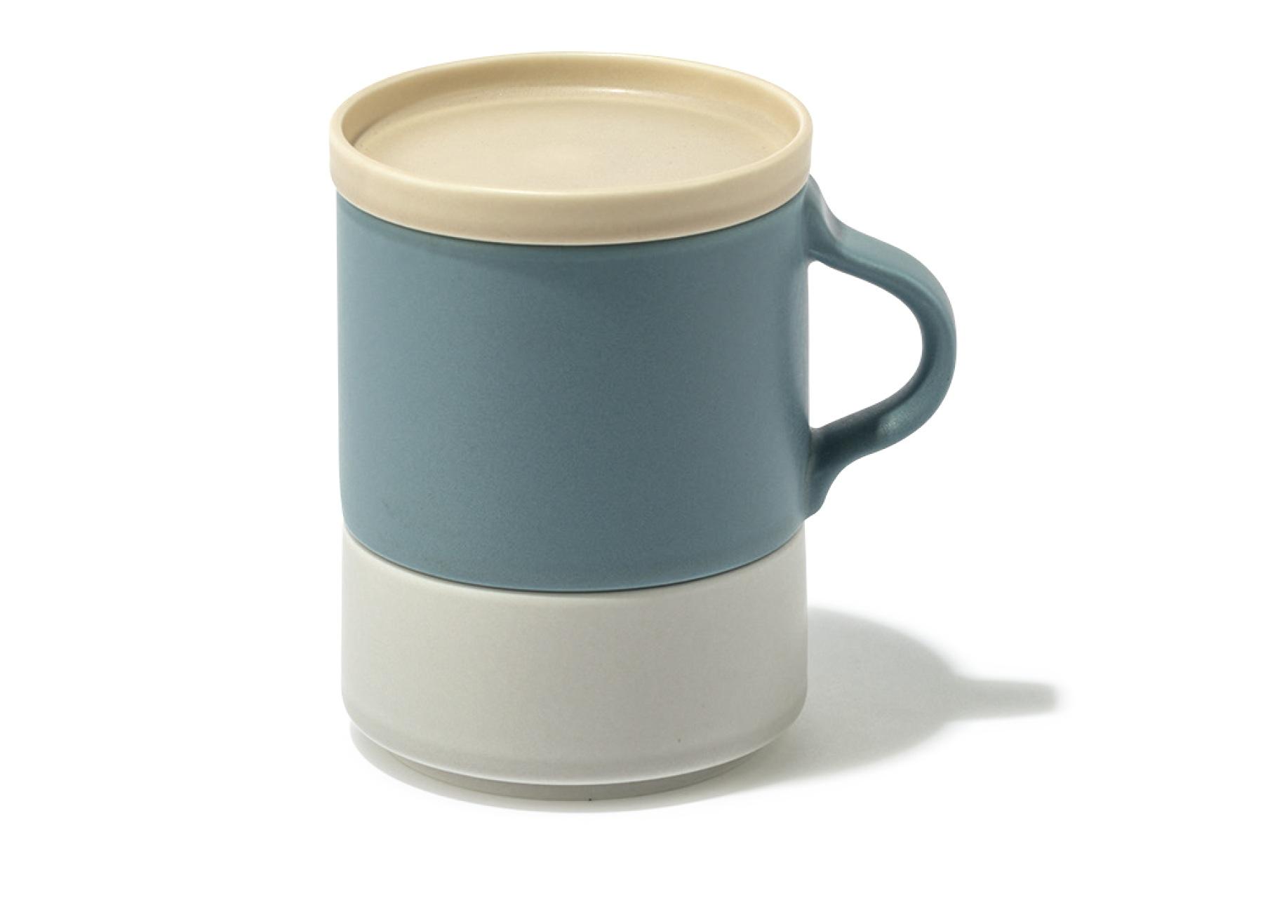 マグカップとボウル、プレートが一体に。どの順番でも積み重ねられ、マグの上にプレートを重ねて保温したり、工夫次第で自由に活用できる。和やかな色合いも魅力。W9.5×D8×H12.8cm ¥3,300(TSUMIKI/トークリビング TEL. 0572-23-5166)