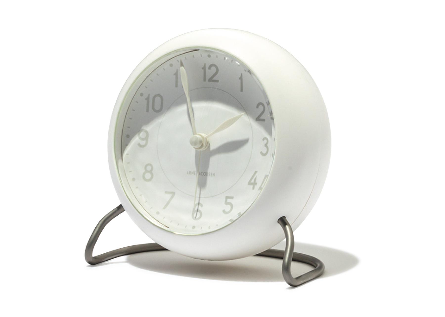 アルネ・ヤコブセンが1930年代に手がけた「白い街」をオマージュし、文字盤や針までマットな質感のホワイトで統一した時計。W約11×D7.5×H12cm ¥22,000(ARNE JACOBSEN/Copenhagen Design Group Japan TEL. 03-6661-6404)