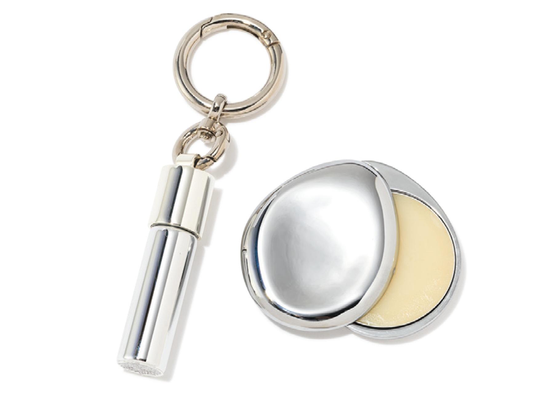 ポケットやポーチに入る小ぶりサイズのネイルオイルとバーム。オイルはチャーム感覚でベルトループやバッグに付けてもおしゃれ。ともにヴィーガン処方で使い心地も優しい。ネイルオイル ¥4,620 バーム ¥8,250(GiU)