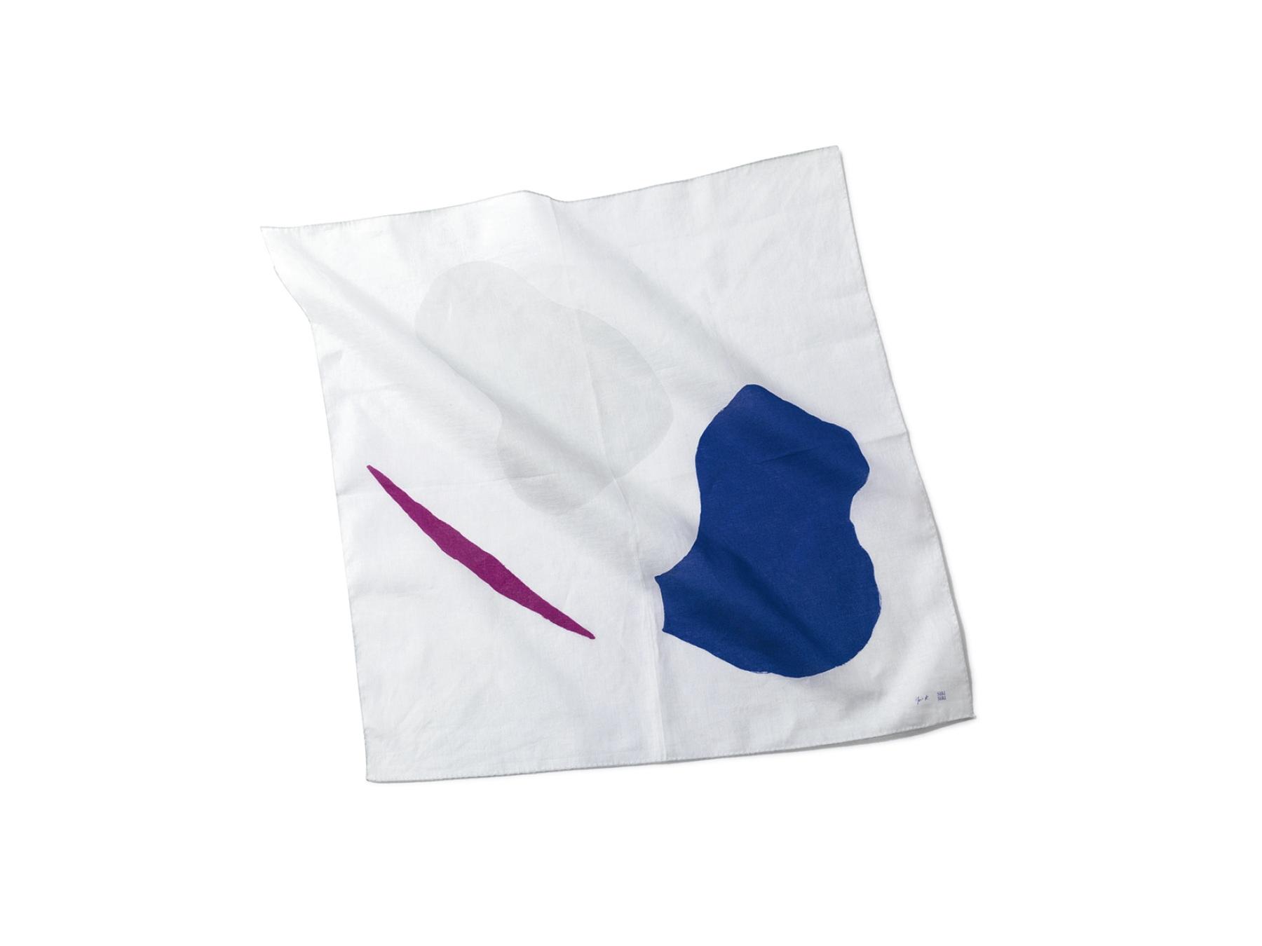 アートのようなプリントが目を引くハンカチは、NY在住のアーティスト・Yui Kugimiyaが描き下ろした抽象画がモチーフ。コットン100%のさらりとした素材感と大判サイズで使い勝手も抜群。40cm角 ¥1,650(SIRI SIRI)