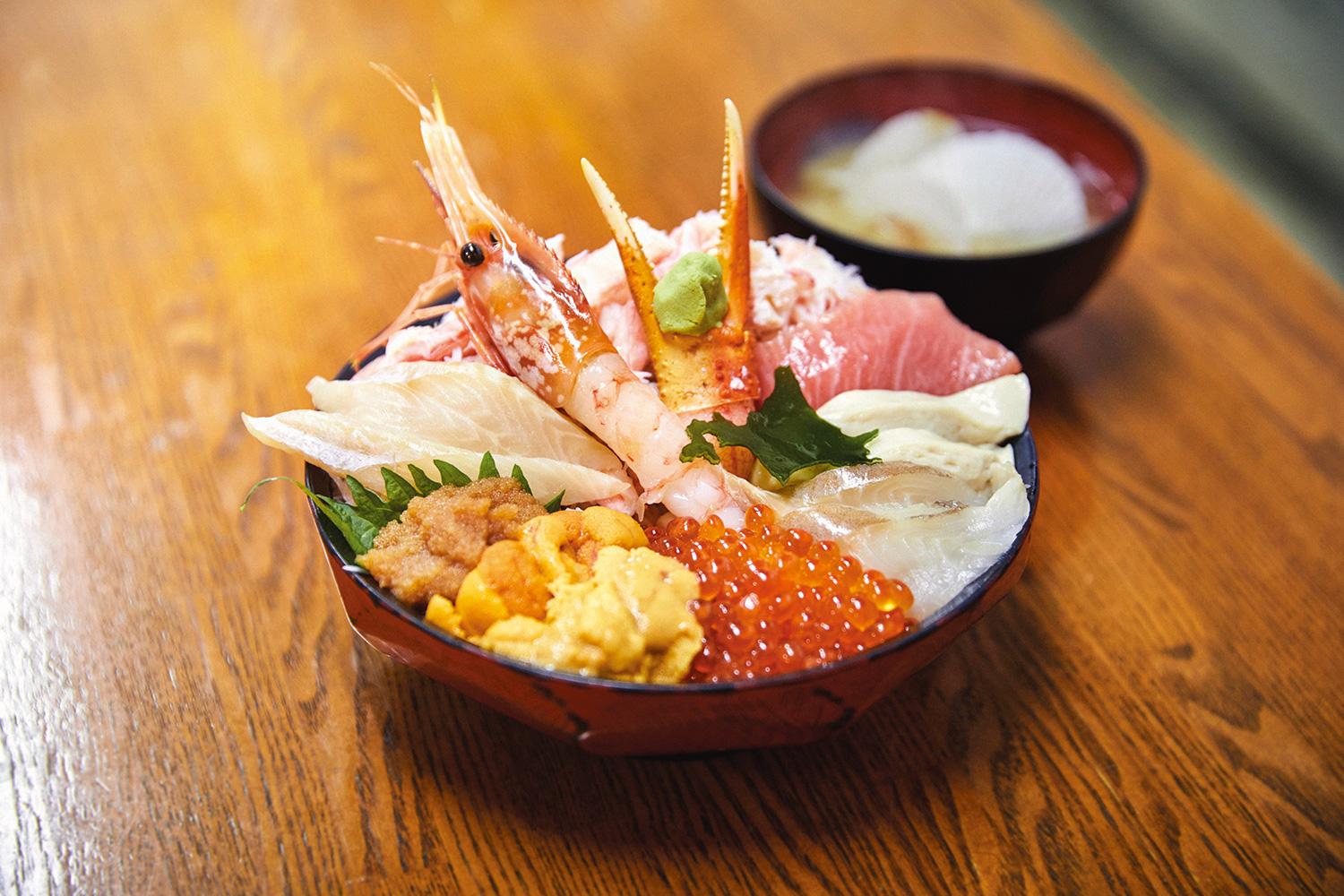 1906(明治39)年に建てられた3階建ての旧磯野支店倉庫をリノベーション。看板メニューの港町海鮮パスタは、鮮度の高い海の幸が豪快に盛られ、バター醤油の味付けがどこか懐かしい。地元食材を使ったアラカルトや北海道ワインも充実。小樽市色内2-2-14 TEL. 0134-31-1888 11:30~15:00、17:00~22:00 水曜休