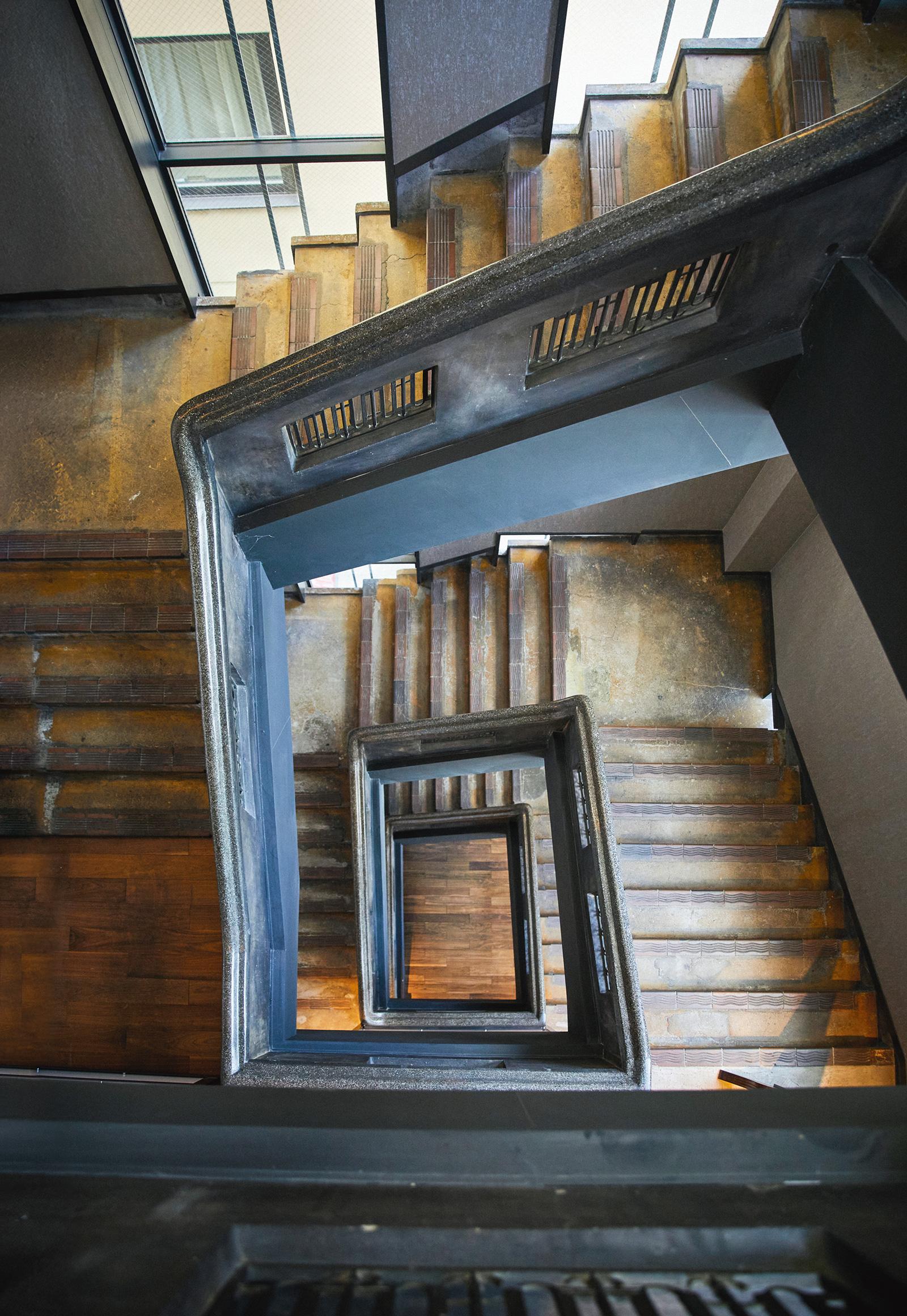 アールデコ様式の螺旋階段。細部にまで職人技が光る