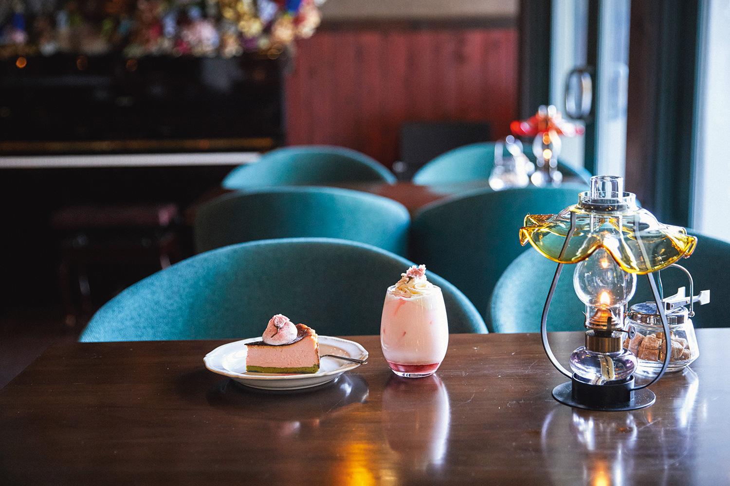 桜と抹茶のバスクチーズケーキ¥890 さくら苺ラテ(アイス)¥750