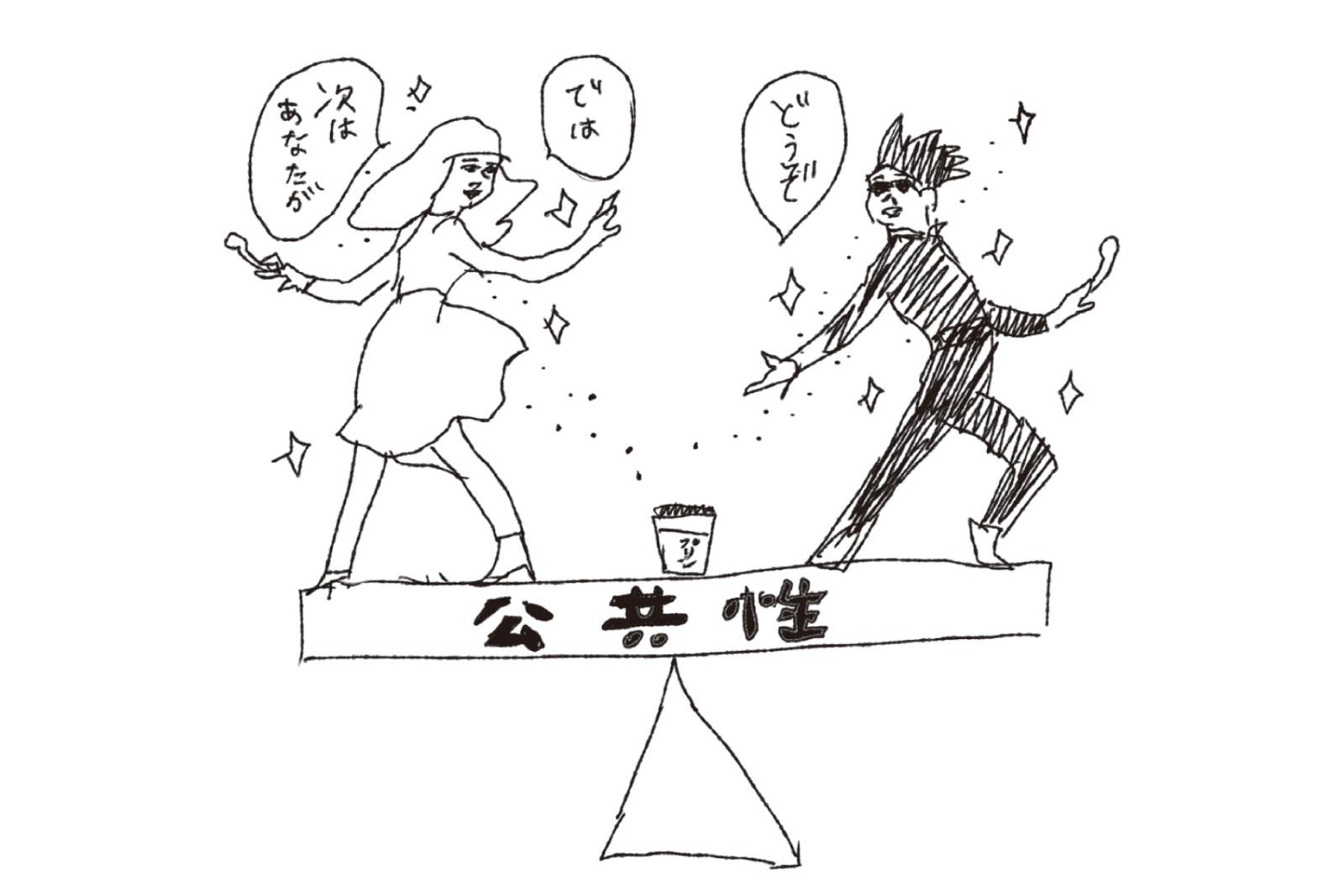 日本国憲法には、生命、自由及び幸福追求に対する国民の権利は、公共の福祉に反しない限り、立法その他の国政の上で、最大の尊重を必要とすると書かれています。「公共の福祉」とは、誰かが決めるものではなく、お互いの権利を尊重するための公平な調整機能のこと。公共性を保つためには、みんなが責任を持って、不断の努力をしなければなりません。なぜなら、社会の変化のスピードが激しい昨今、共通の普遍的価値を見出すことは難しく、誰かの権利が脅かされたり、不公平にならないようにするためには、常に対話し続けないと対処できないからです。