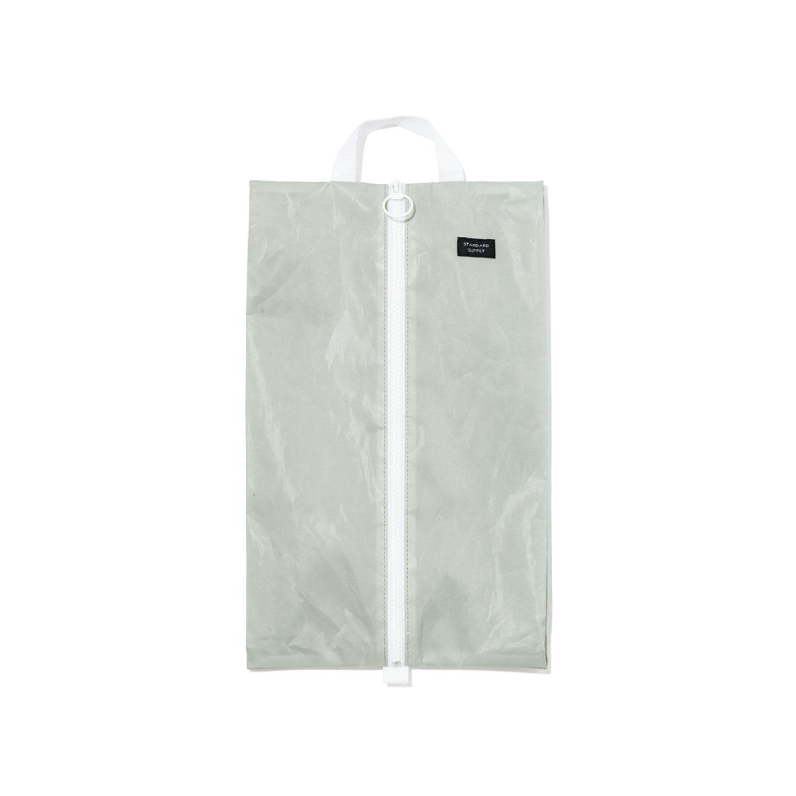 センターファスナー仕様のシューズケース。約70gと軽量ながら、強度の高い素材を使用しているため耐久性も◎。他にブラックとホワイトもあり。W24×H39cm ¥6,600(スタンダードサプライ/スタンダードサプライ 二子玉川 TEL. 03-5797-9311)