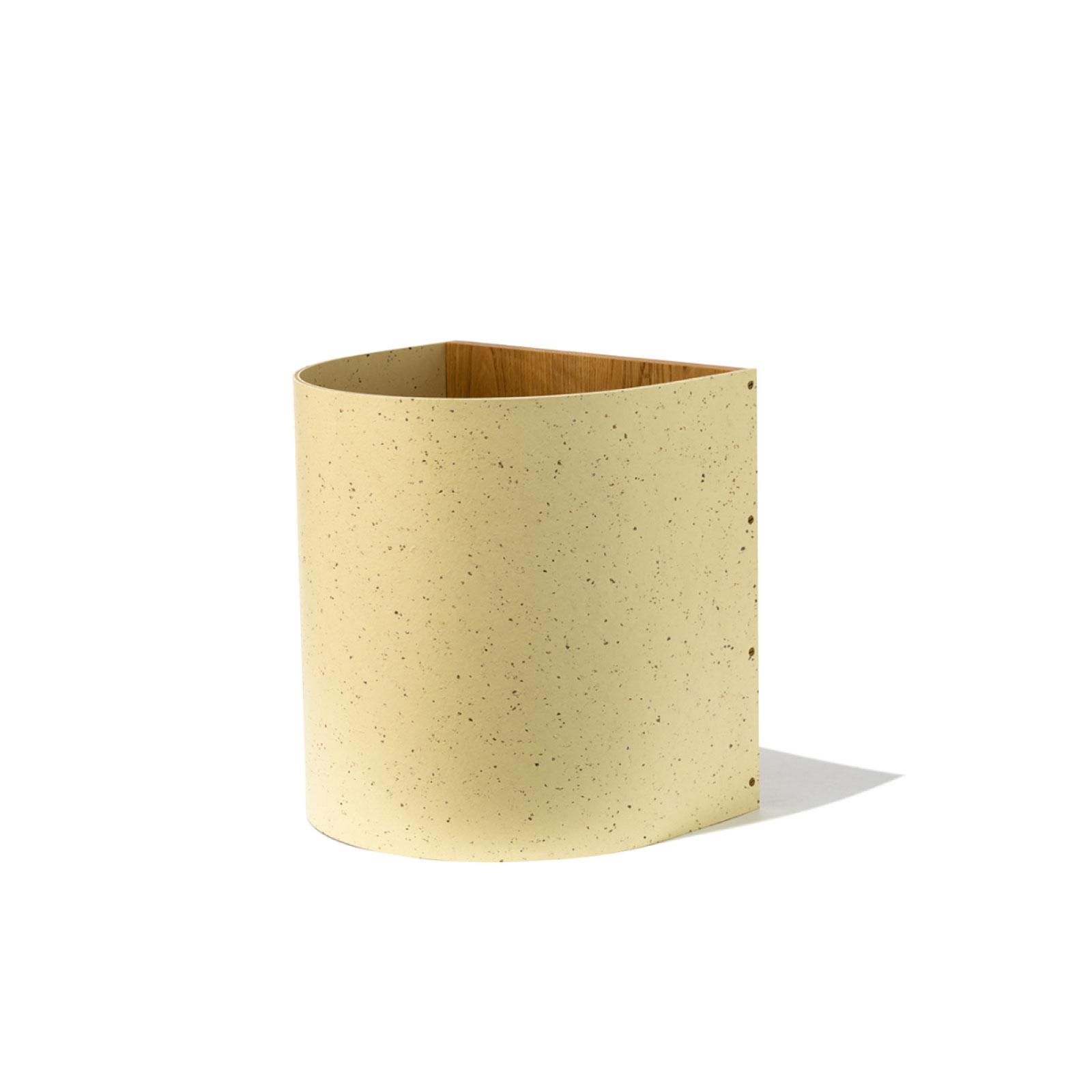 床材の一種であるマーモリウムと木材を組み合わせたコンテナ。半円の筒型で壁面に沿うように収まり、スペースを有効活用可能。他にネイビーもあり。W28×D24×H30cm ¥22,000(ランドスケーププロダクツ/プレイマウンテン TEL. 03-5775-6747)