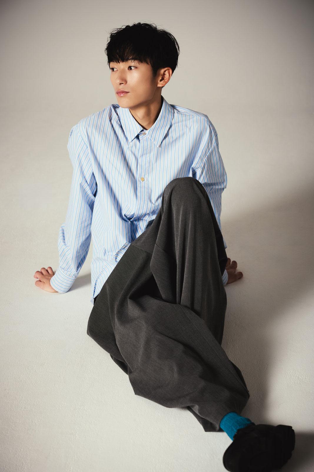 ニットジャケット ¥44,000 シャツ ¥30,800(共にクルニ/クルニ フラッグ シップ ストア TEL.03・6416・1056) パンツ¥6,600(リメール/リメール ストア TEL.03・6276・7644) その他はスタイリスト私物