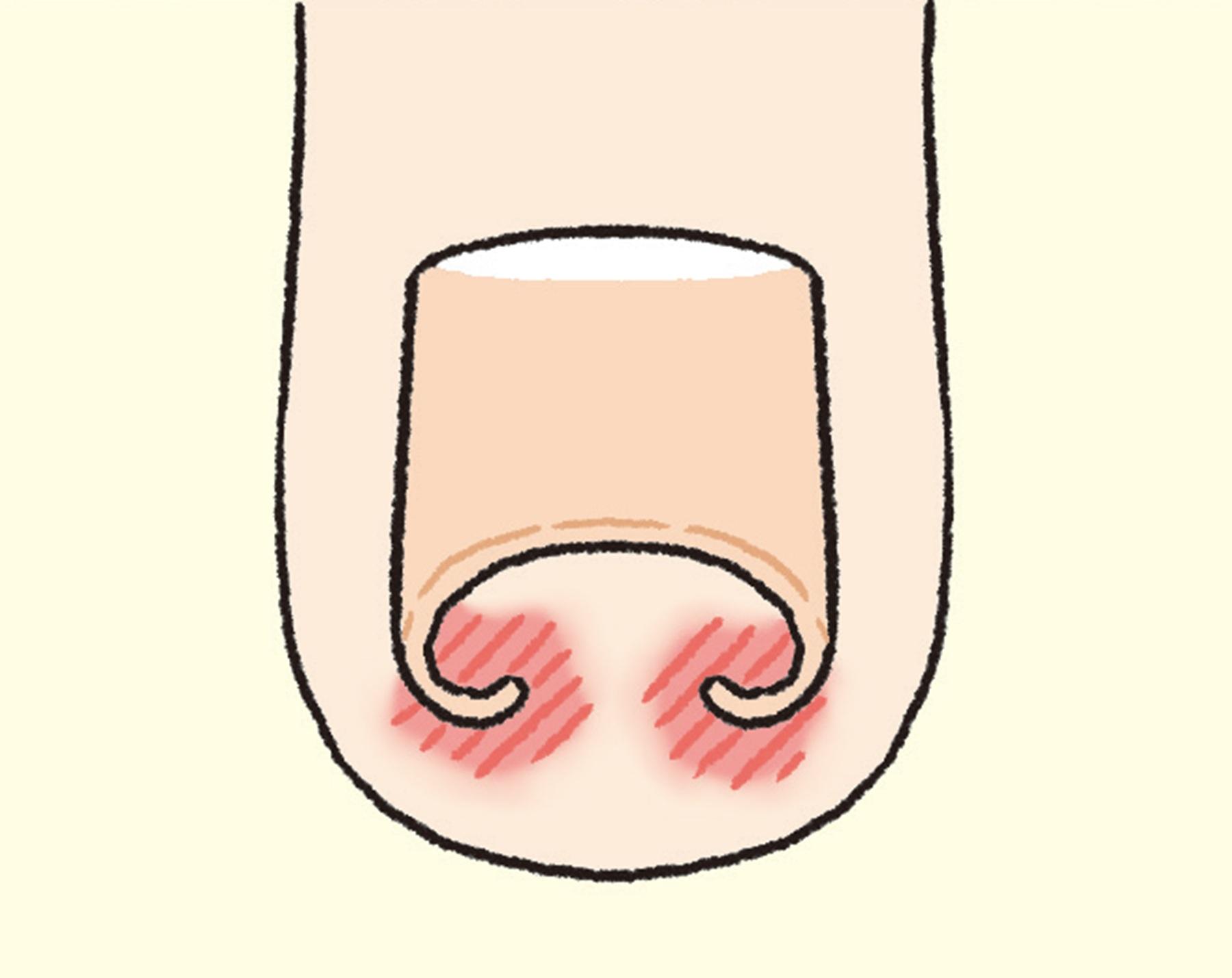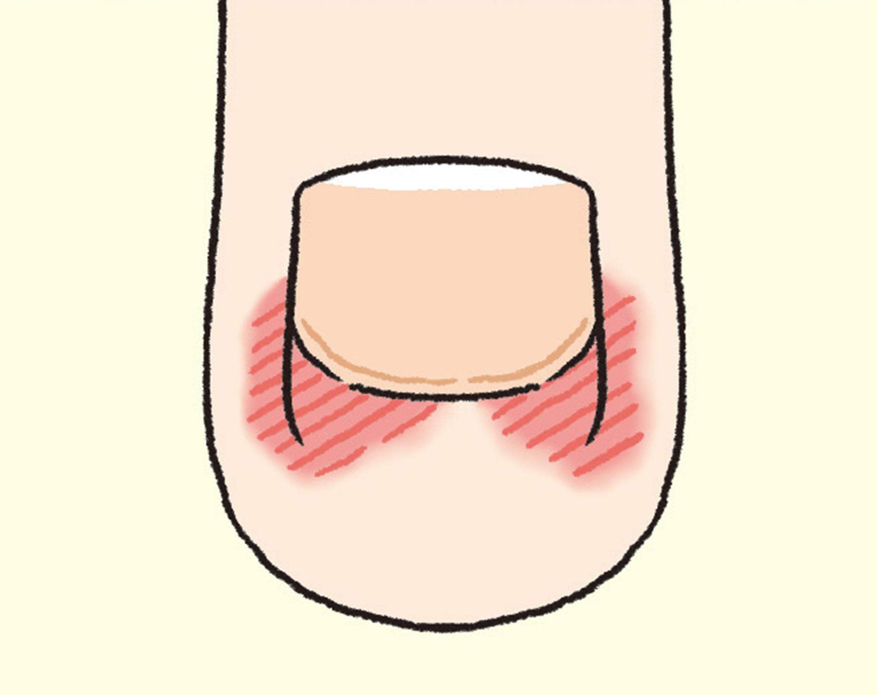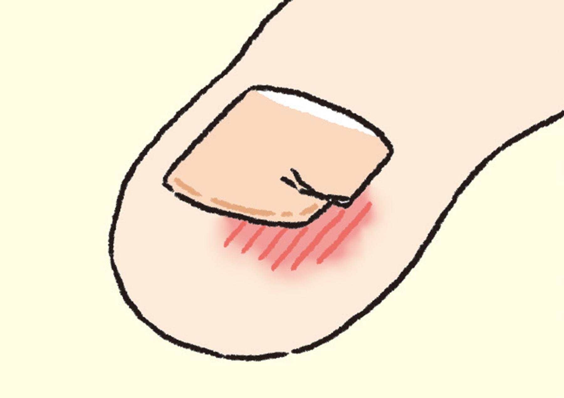 爪を短く切りすぎて、指先の皮膚や爪床(爪の下面が接している皮膚の部分)が露呈している状態。痛みや化膿を引き起こしやすい。