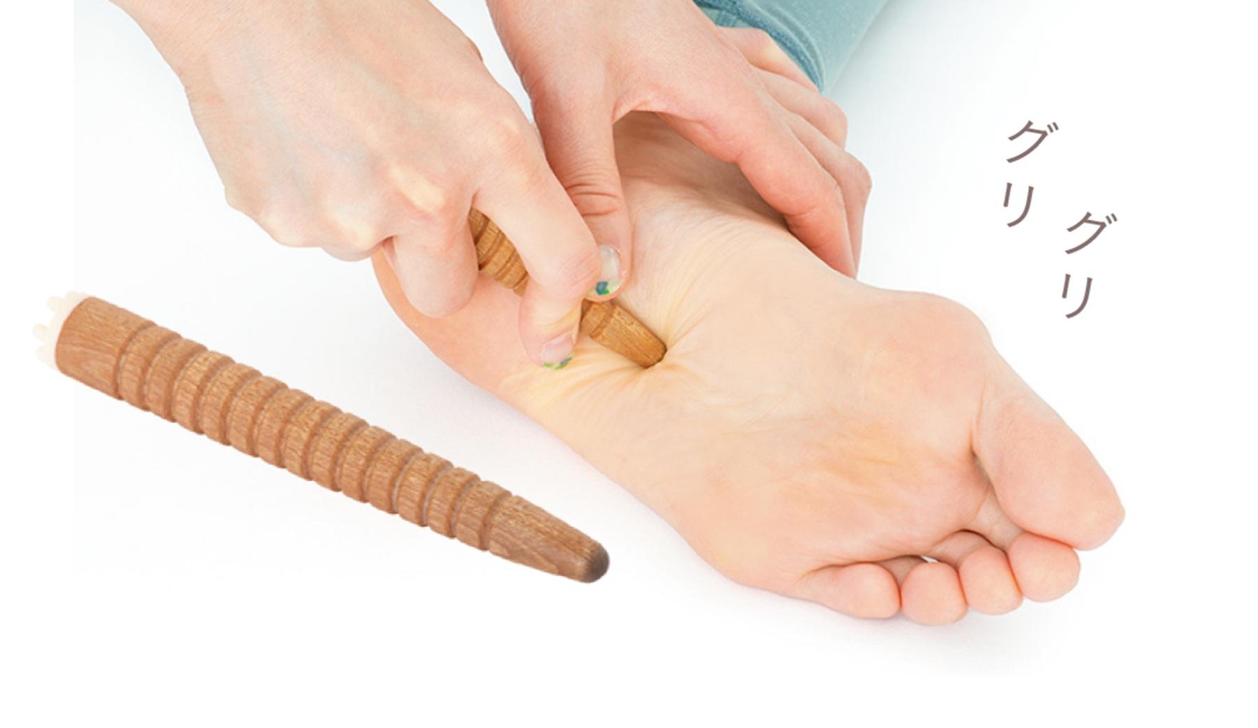 より奥深くまで反射区を押したいという人におすすめしたいのが、ツボ押しやマッサージに使う、木製のぐりぐり棒。100円ショップやECサイトなどで購入できるので探してみよう。イタ気持ちいいくらいの力加減で行って。