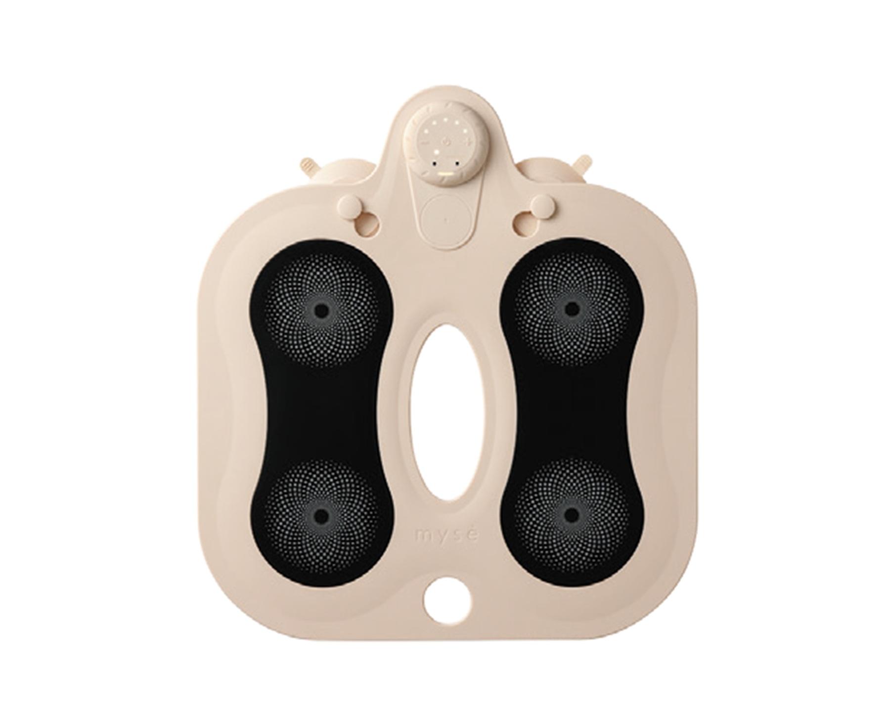 湯船に沈めて使える防水機能が特徴。使い方は、浴槽にシートを敷いて座るだけ。お尻、太ももや足裏のほか、吸盤で浴槽の側面に固定することで背中のケアも可能に。「入浴タイムなら服を脱いでいるので、面倒な準備も必要なし。座るだけで、お風呂がジムに早変わりします」(神原さん)。¥27,500(ヤーマン TEL:0120・776・282)