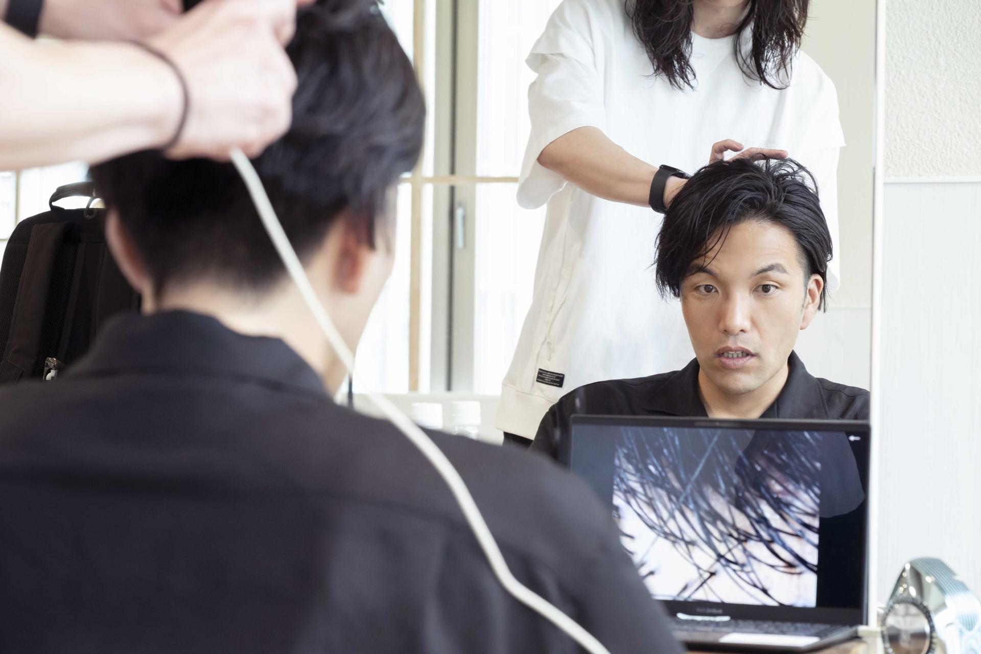 まずは、マイクロスコープとUVライトを使った頭皮の状態診断からスタート。