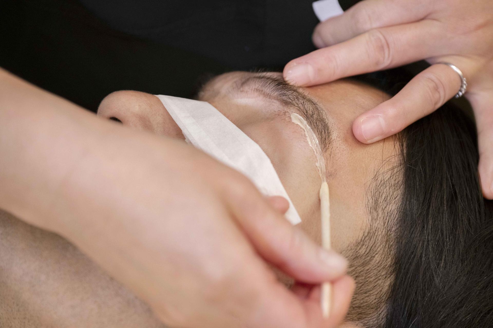 カウンセリング後、眉デザインがスタート。眉頭・眉山・眉尻の3つのポイントを決めて、自眉を活かした眉のガイドラインを定める。