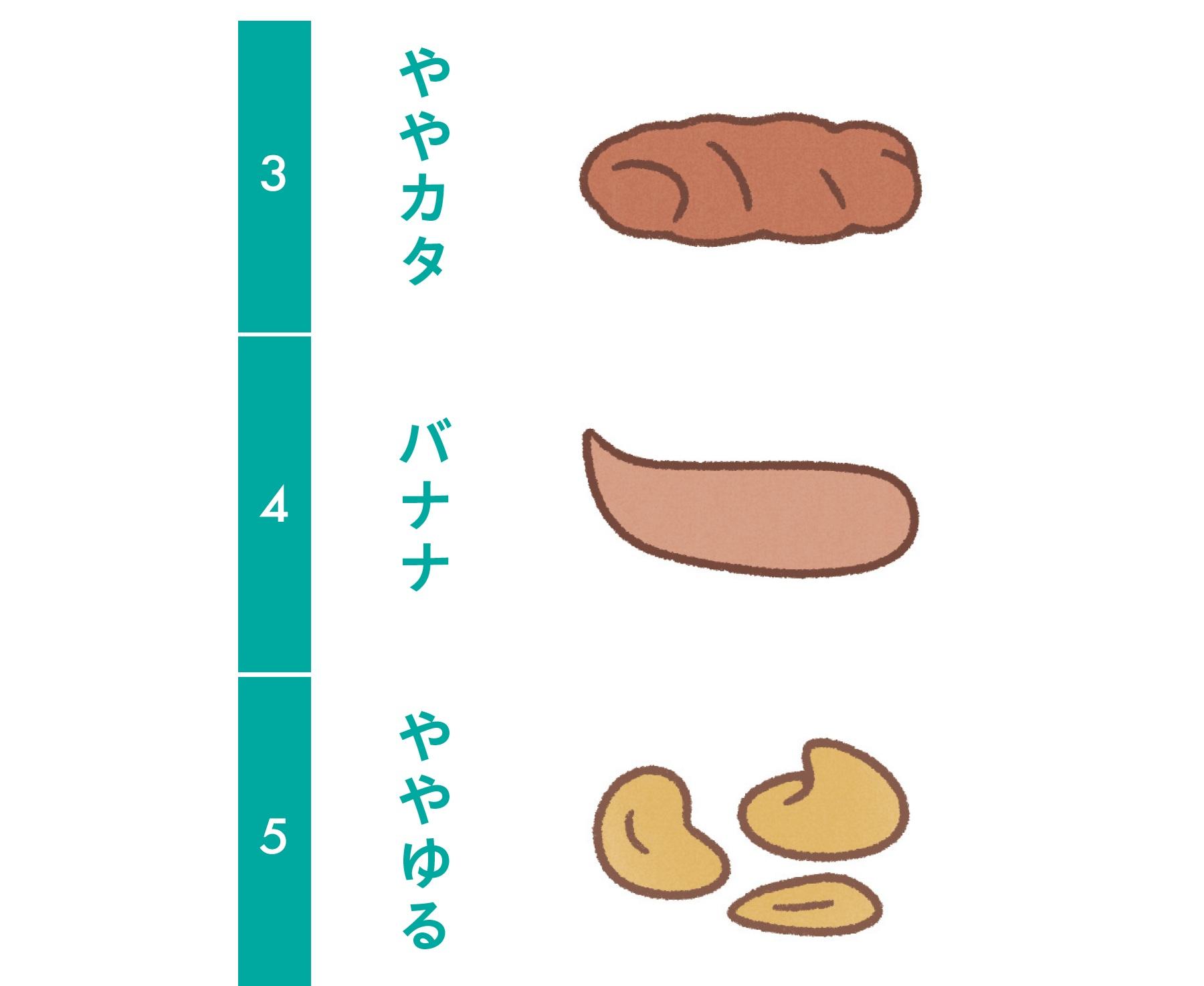 ウンチは約80%が水分で、残り20%が食べかすや腸内細菌の死骸、剥がれた腸壁などで構成される。「腸が適切に動いているか、調子がいいかは、ウンチの水分量つまりカタチで分かります」。そこで役立つのが世界共通のブリストル便形状スケール。便の形状と硬さを7段階に分類したものをガイドに、自分のウンチがどれに当てはまるか判断を。「3~5なら現状維持を心がけて」