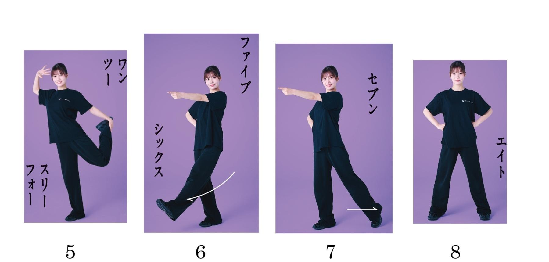 5~8、1~4を左右を入れ替えて行う。これを2セット。