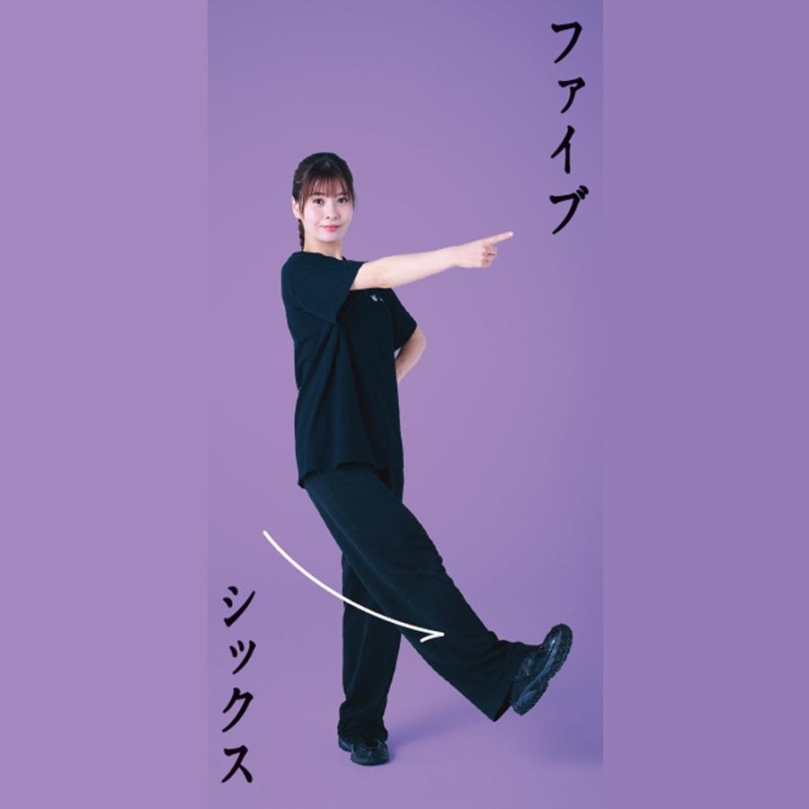 体重を支える足首をしっかり曲げ伸ばし! 腕は、肩甲骨から動かすのがポイント。1と5ではしっかりポーズをキープして。