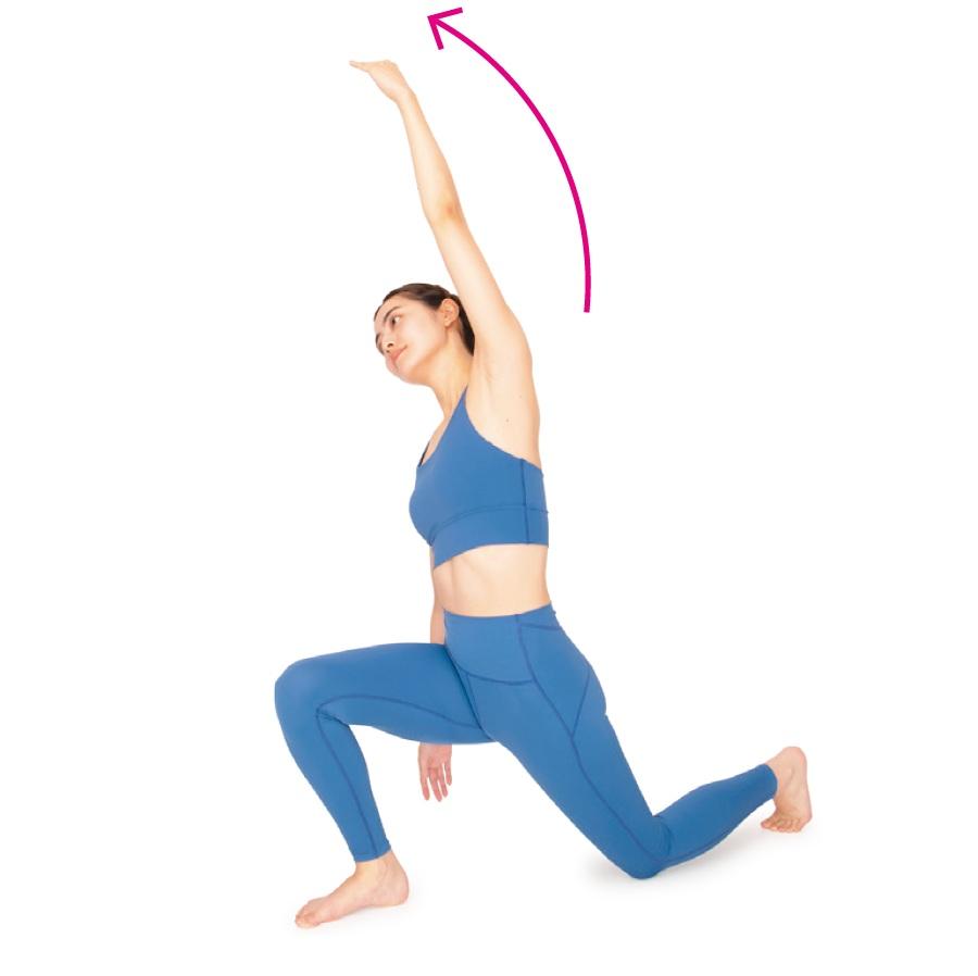 屈曲筋群と伸展筋群が同時にほぐされて骨盤のゆがみも整い、美脚と美尻効果も。腕を上げて体側を伸ばす動きを加えると腹横筋などがストレッチされ、ウエストの引き締めにも。