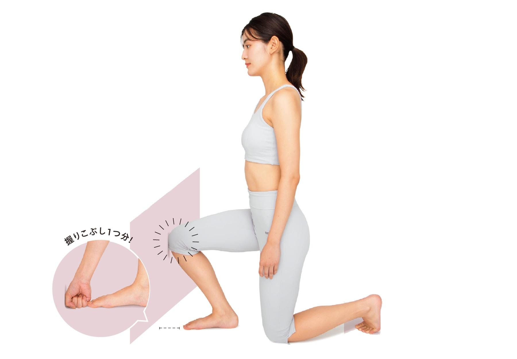 足のインナーマッスルが衰えると、足裏のアーチが下がって外反母趾やタコの原因にも。足裏にドームをつくるようにギュッと縮める動きで筋肉が刺激され、足元が安定して姿勢の改善や立位・歩行時の安定性も増す。