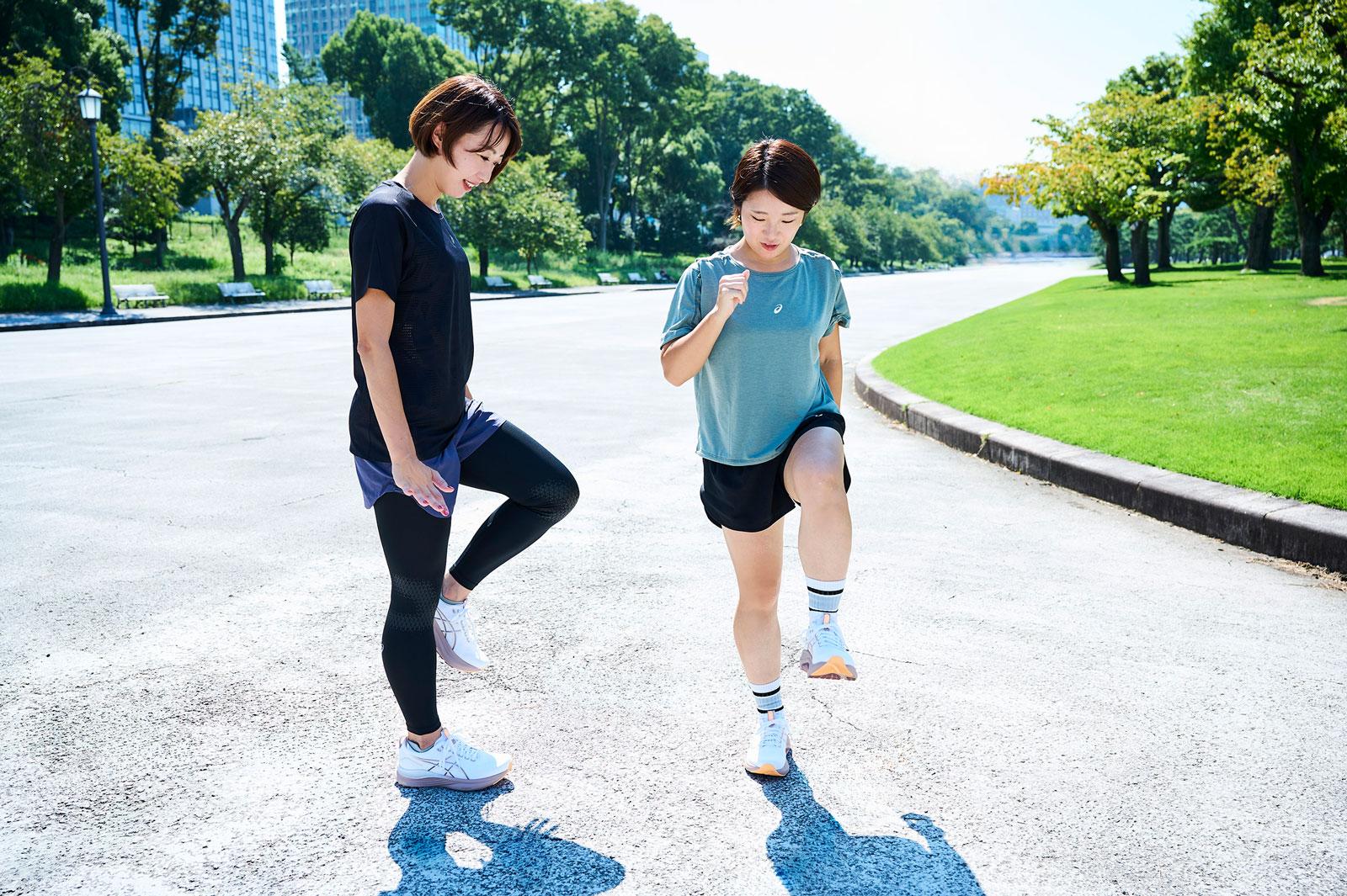 無理なく、ケガなく、効率よく走るためのアシックスランニングメソッド「3ステップドリル」の「接地」を実践。