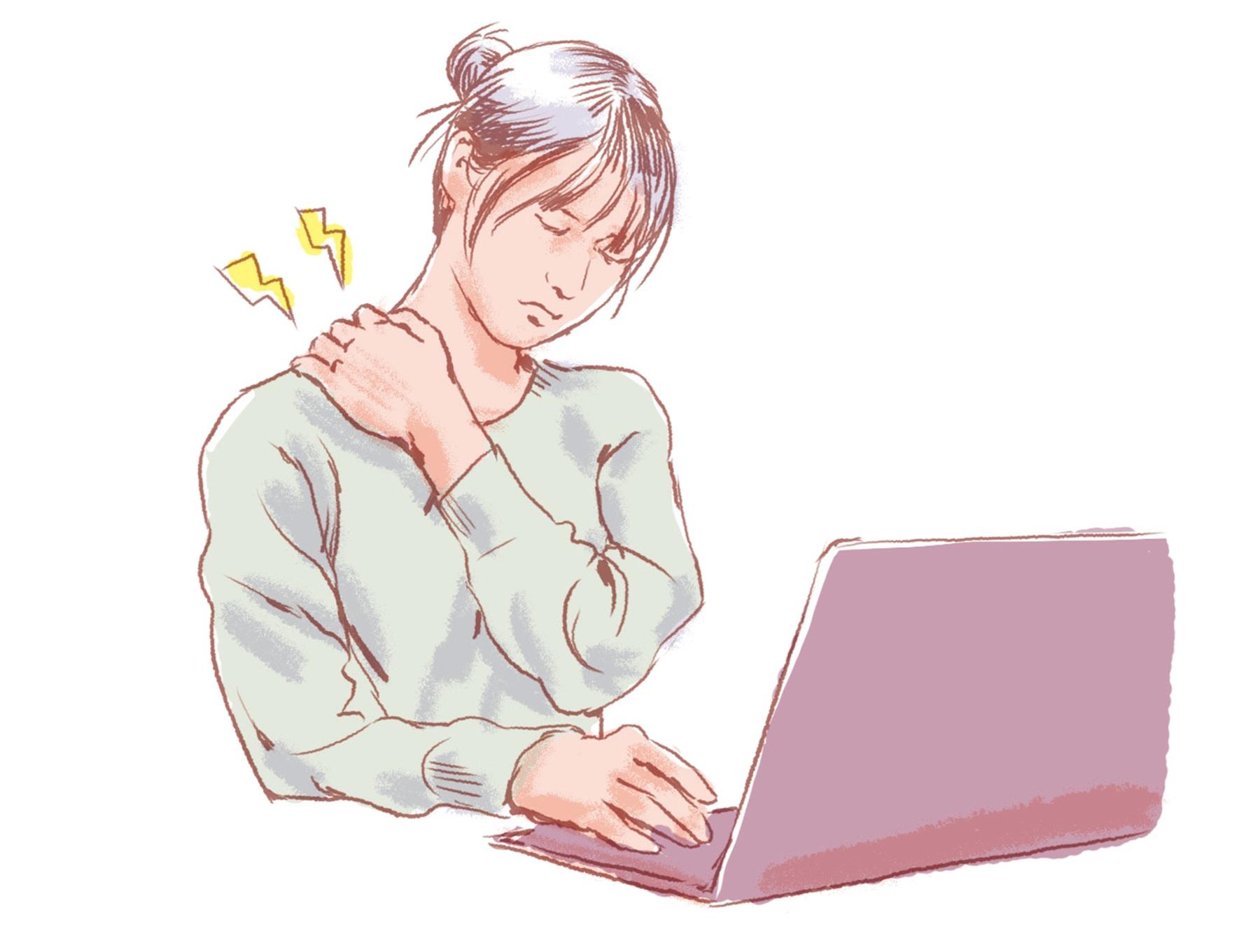 集中すると、あっという間に数時間が経っているPC作業やスマホ視聴。「立って肩を回すだけでもいいので、1時間に1回は体勢を変えましょう。また面白いことに筋肉は心理状態に大きく左右され、ゲームや動画観賞など楽しい時は筋肉の固まり具合はぐっと減ります。コリ軽減のためにも、できるだけストレスのない生活を!」
