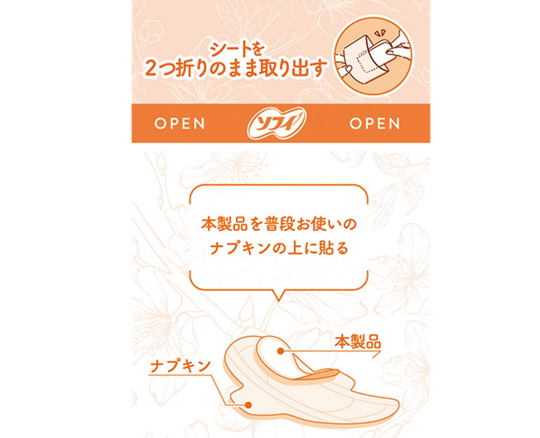 使い方は、生理期間中に普段使っているナプキンに専用シートを重ねて貼るだけと簡単だ。