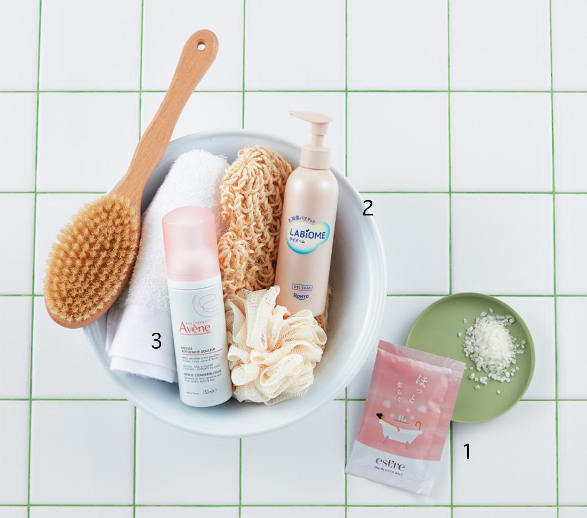 バスタイムは自分をいたわる大切なひととき。女性のリズムを整える癒しの香りのバスソルトや、やさしい成分のフェミニンなソープで心地よく整えて。インバス、アウトバスで使用できるケアアイテムをご紹介。